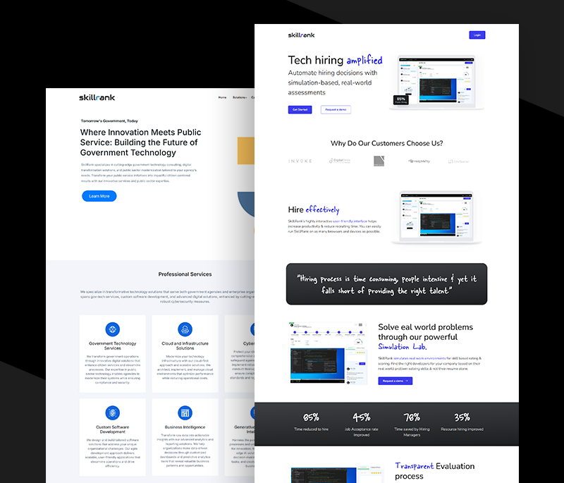 SkillRank specializes in government technology consulting, offering digital transformation and public sector modernization services tailored to agency needs. Their expertise includes cloud infrastructure, cybersecurity, custom software development, business intelligence, and AI solutions. SkillRank's solutions, such as CivicSight and SkillTest, aim to enhance citizen services and streamline government operations.